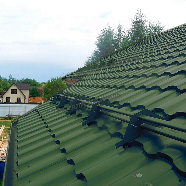 Профиль имитирует классическую черепицу с выраженными волнами, создавая эффект натурального покрытия. Высота волны оптимизирована для лучшей жесткости и водоотвода. Это обеспечивает простоту монтажа и минимизирует риск протечек. Профиль адаптирован для скатов с углом от 12 градусов, подходя для большинства крыш.
